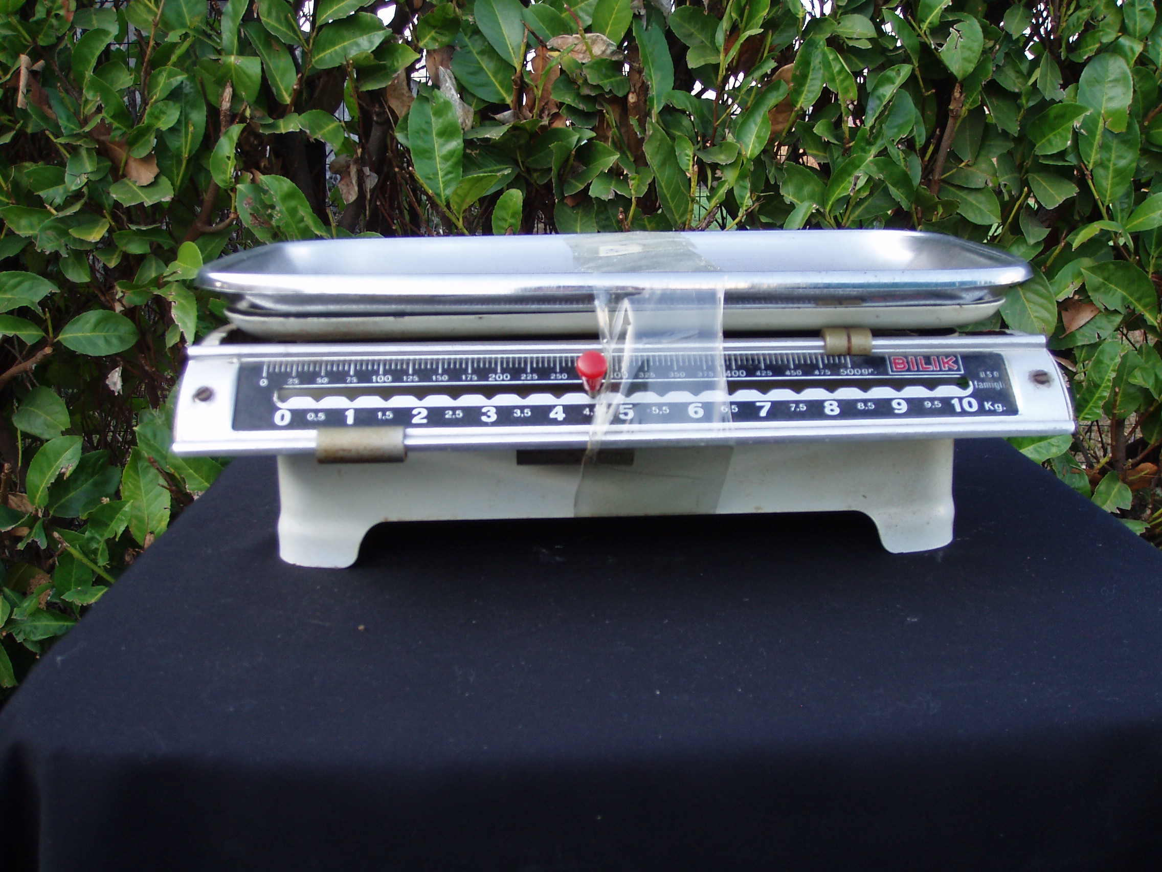 Bilancia meccanica modello Bilik. Pesa sino a 10 kg ed ha dimensioni del vassoio di 20×30 cm. Perfettamente funzionante è ancora in ottime condizioni.