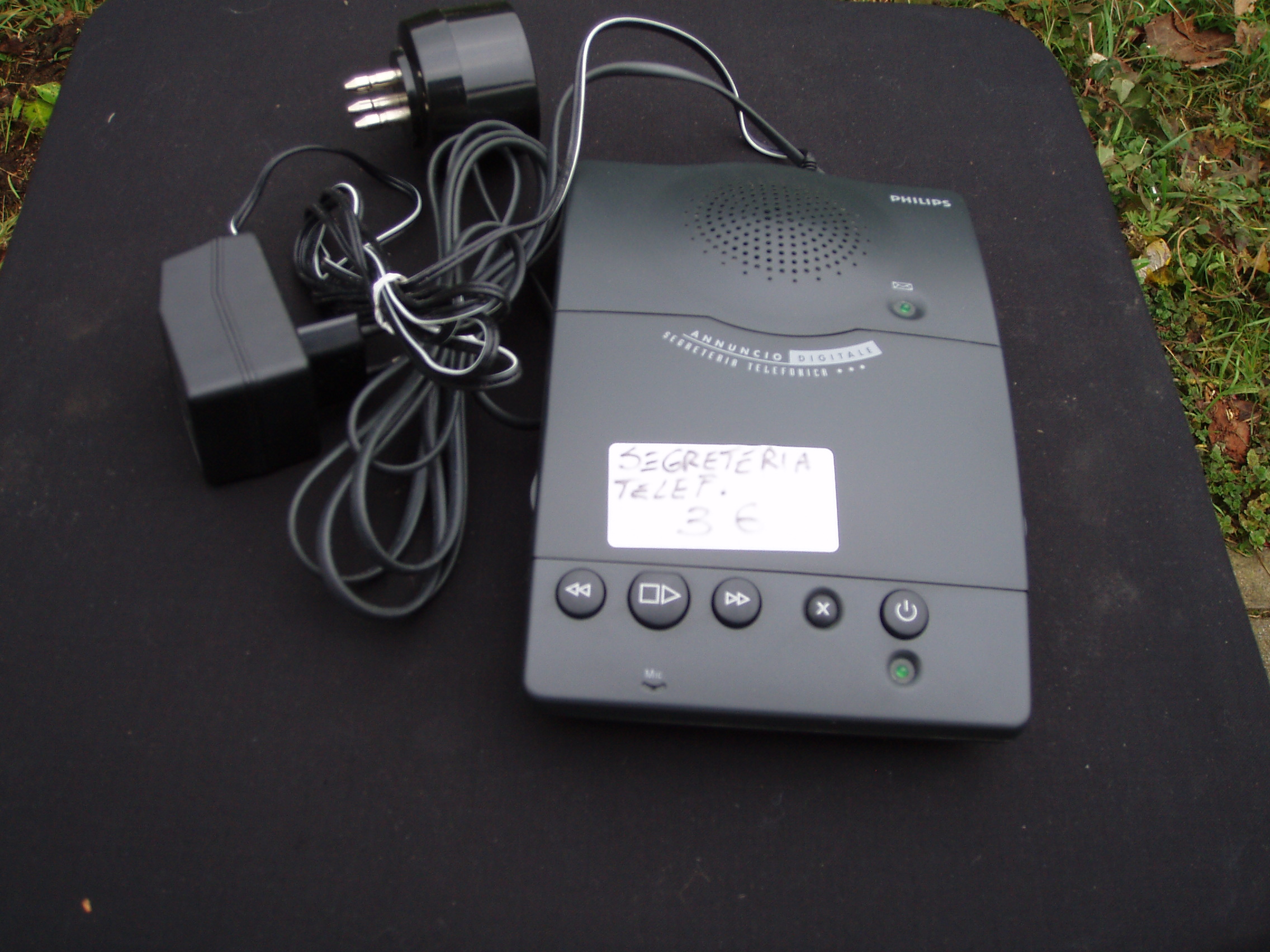 Segreteria telefonica digitale philips modello Annuncio. Con alimentatore e cavo telefonico. Registra messaggi sino a due minuti. Dotata di risponditore automatico, pulsante di riascolto e cancellazione vecchi messaggi.