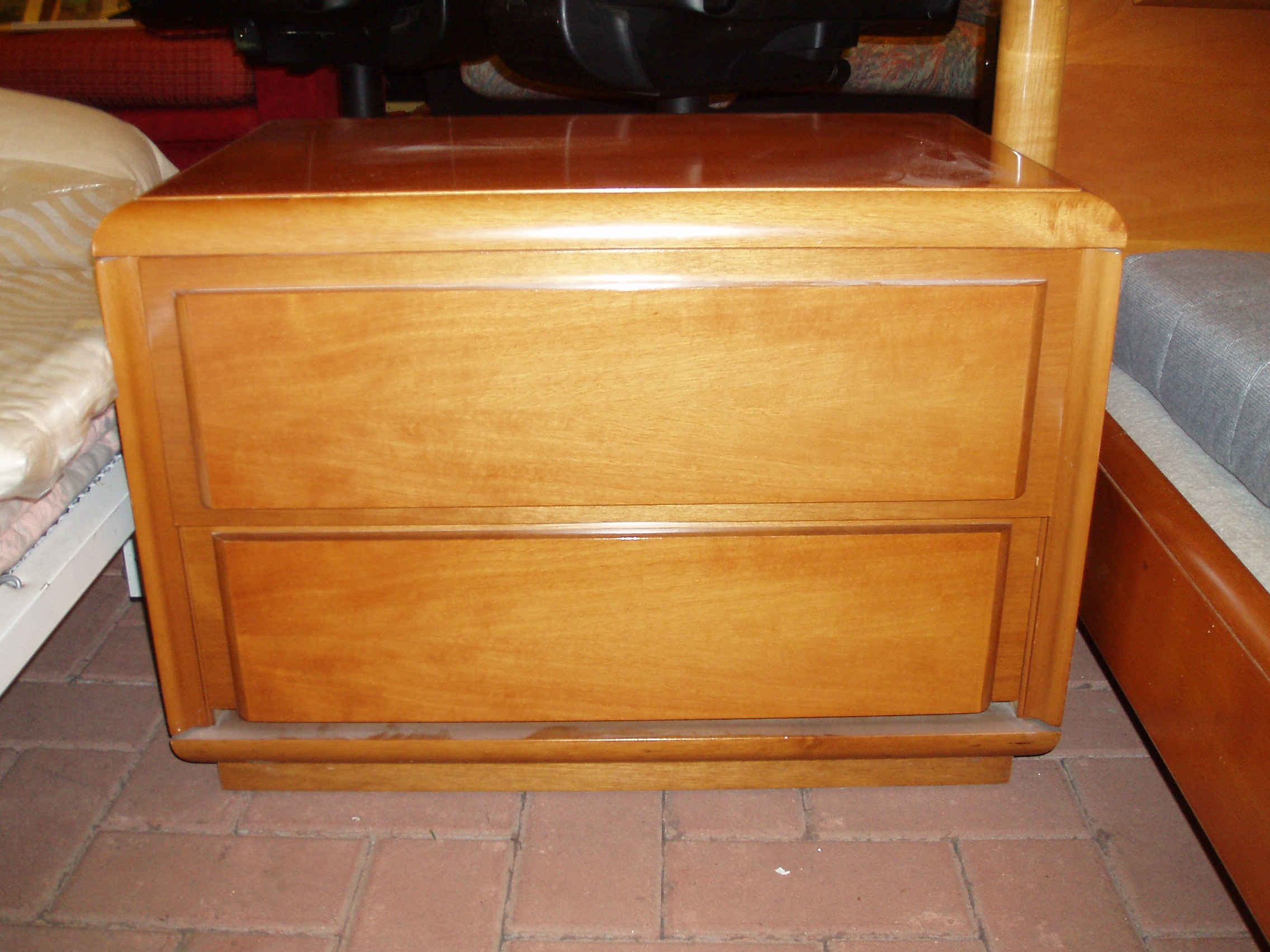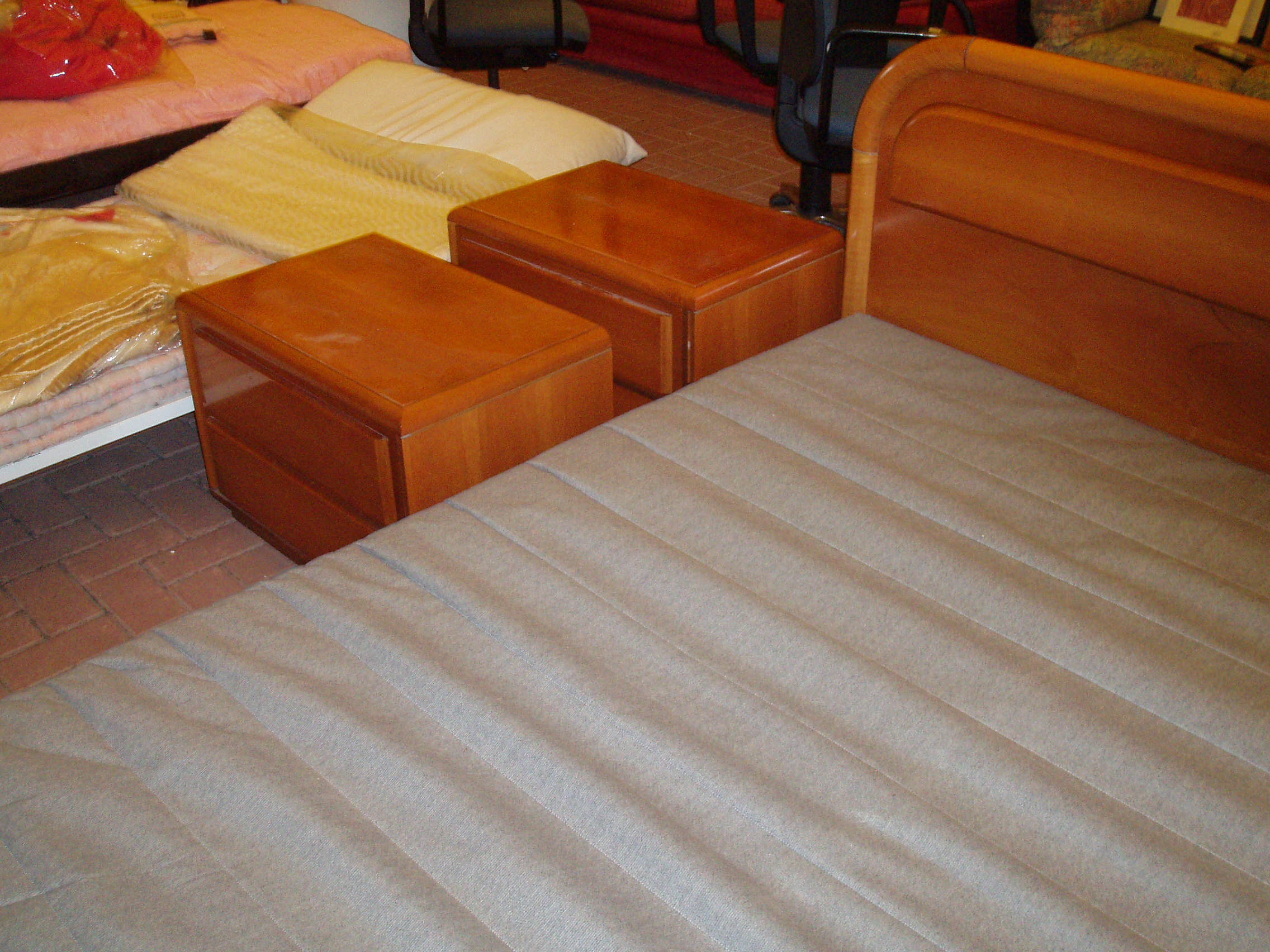 a due piazze, completo di due comodini e materasso. La testata dispone di sistema luce per la notte e per la lettura. Il letto ha una struttura robusta e esteticamente è in ottime condizioni. La rete è con le doghe. Ogni comodino ha due ampi cassetti.