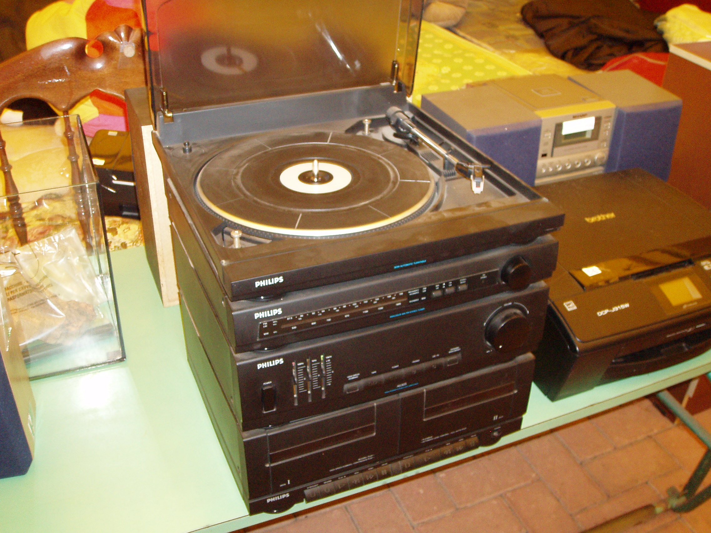 dotato di radio, amplificatore, registratore a cassette, giradischi e due casse altoparlanti. Le varie parti funzionano perfettamente escluso uno dei due lettori di audiocassette.