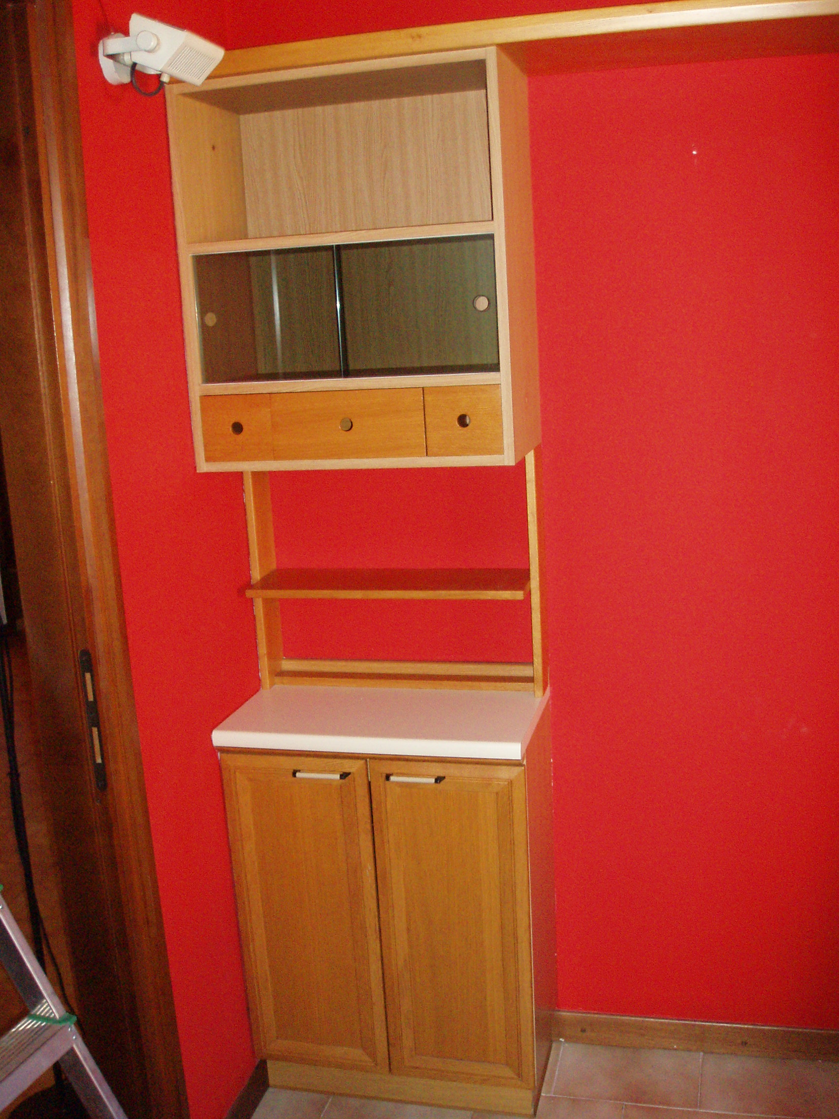 lavastoviglie e forno, e frigo della Whirpool di classe A. La cucine lineare è lunga 3 mt col mobile frigo e prevede due pensili componibili su una seconda parete. Completa di pensili sopra, cappa e scolapiatti si presenta ancora in ottime condizioni. La base coi cassetti è sulla seconda parete.