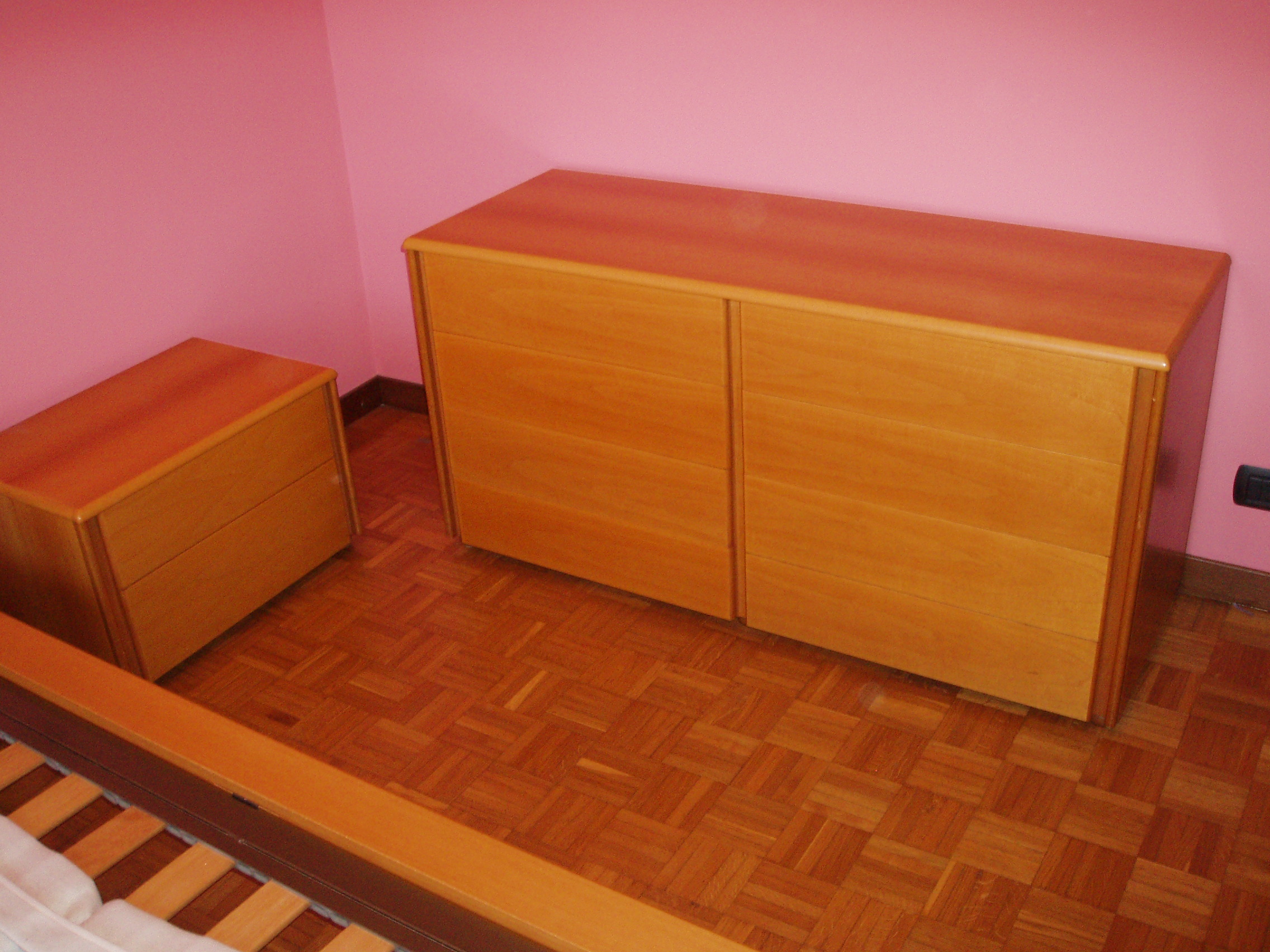 completa con letto matrimoniale e rete a doghe, armadio sei ante con cassettiera centrale, comò e due comodini in ottime condizioni. L’armadio è largo 3 mt e altro 270cm.