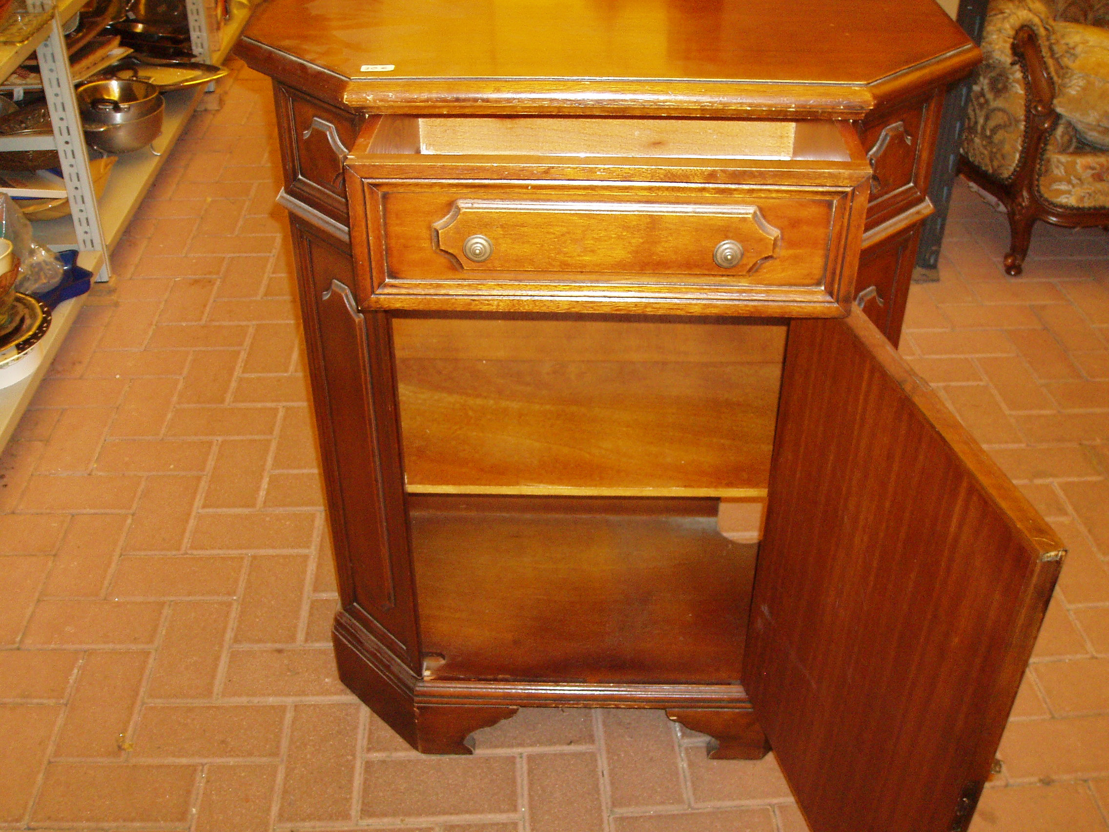 in arte povera adatto per ingresso o soggiorno come appoggio per telefono e similari. Misura 75 cm di larghezza, 35 di profondità e 92 di altezza. In buone condizioni, presenta un piccolo segno sopra facilmente ritoccabile. Il fondale è forato in basso a dx per far passare i cavi elettrici.