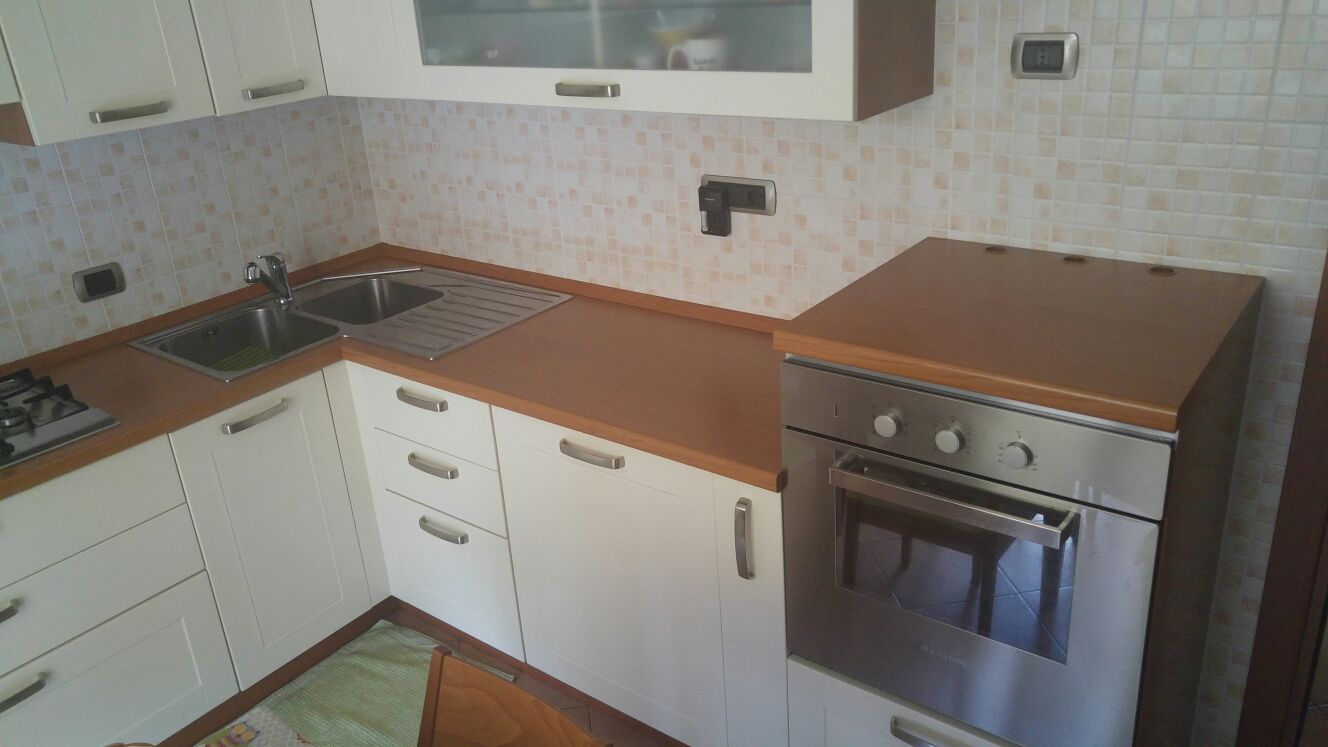 con piano marrone, dimensioni 291x 244 cm oppure 351x 184 cm (essendo il mobile forno modulabile). Di design moderno, con lavello nell’angolo, lavastoviglie e piano cottura ariston seminuovi, è priva di frigo e forno. Si presenta in perfette condizioni, come nuova.
