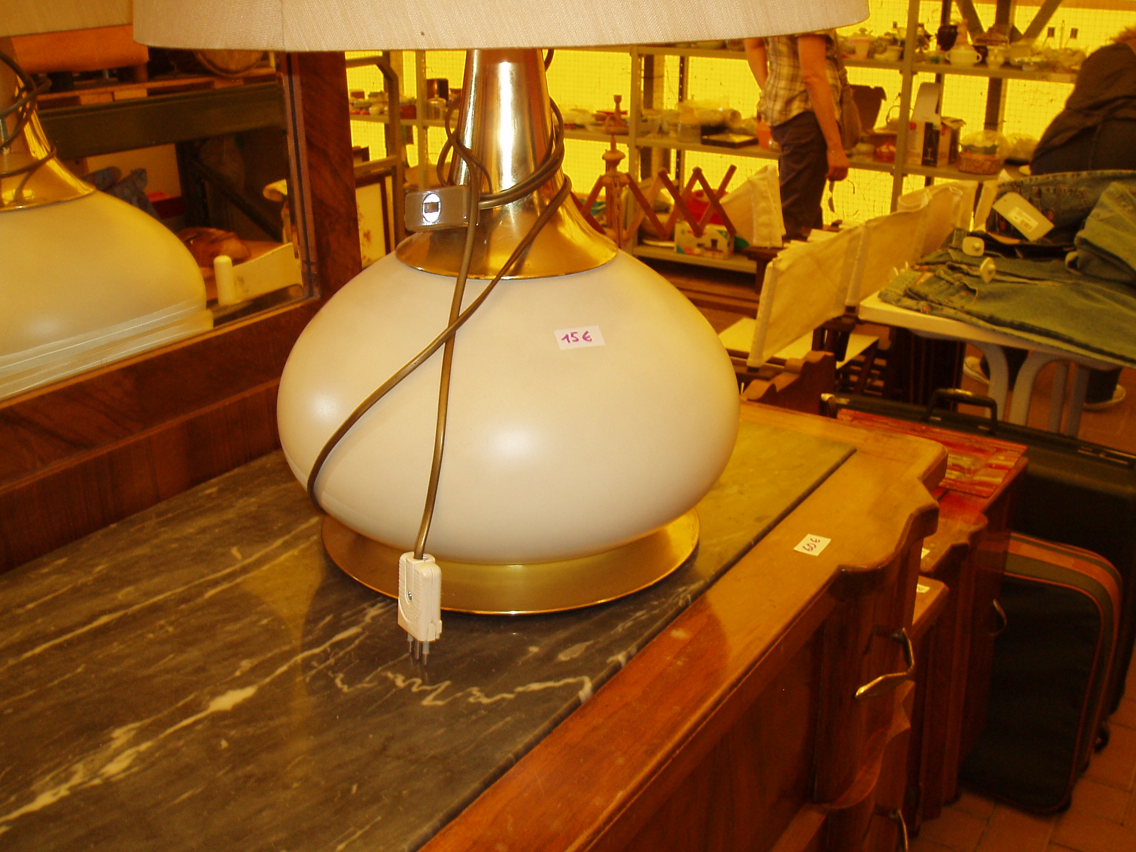 cavo di alimentazione con interruttore e lampadina a basso consumo. La base misura 30 cm di diametro mentre la cupola della bajour misura 45 cm di diametro. La lampada si presenta in ottimo stato.