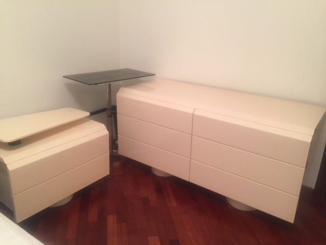 in buone condizioni con armadio ad ante scorrevoli largo 340 cm e alto 270 cm, letto matrimoniale con testata in pelle nera, comò a 3+3 cassetti largo 145 cm, profondo 55 cm e alto 72 cm, due comodini larghi 73 cm alti 55 cm e profondi 55 cm.