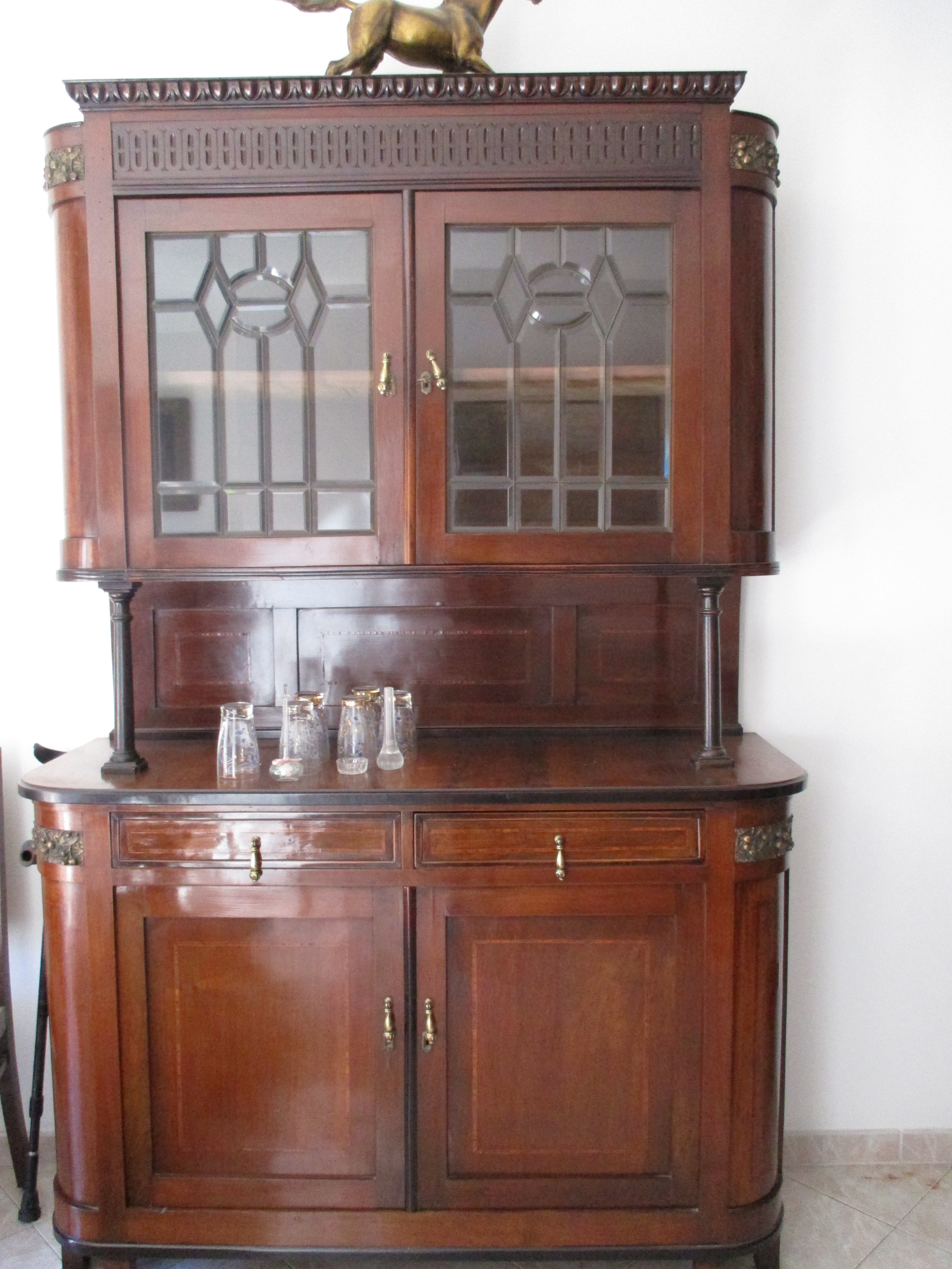credenza d'epoca coi vetri molati, vista frontale