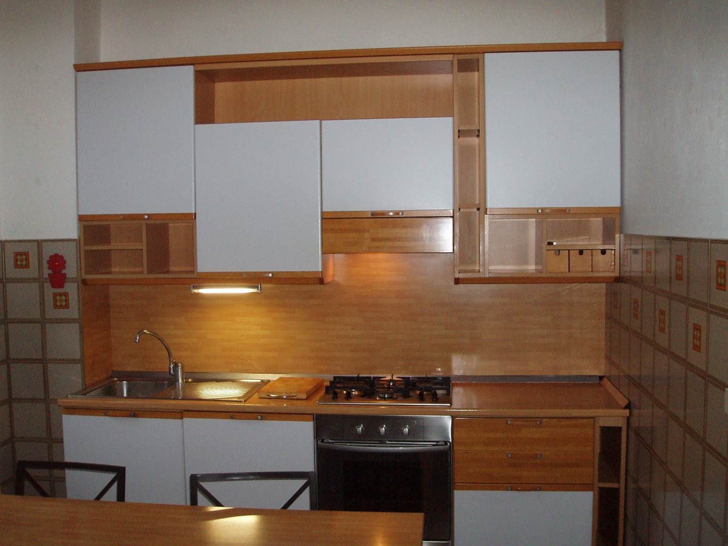 Cucina in buone condizioni. Disposta su due lati con elettrodomestici.