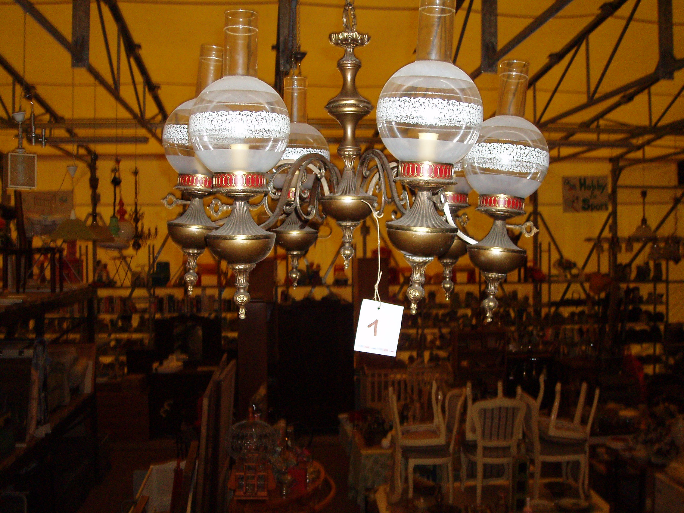 Lampadario a sei bocce in vetro decorato, diametro 60 cm, ottime condizioni