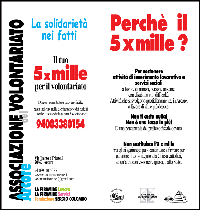 DONA IL TUO 5 X 1000 PER IL VOLONTARIATO CF 94003380154 ------------------------------------- approfondisci