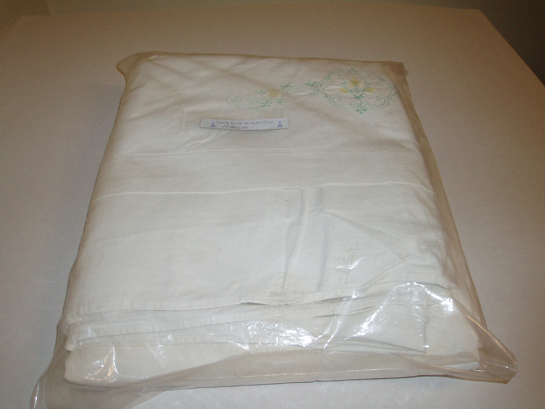 Set lenzuola matrimoniali in flanella ricamata. In buone condizioni.